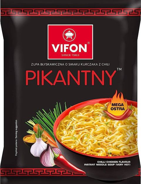 VifonExperience the bold and flavorful taste of Vifon Chilli Chicken Pikanty Instant Noodles. With 22 individual packages of 70g each, these quick and easy noodles are the perfect meal for any busy day. The aromatic spices combined with the delicious chicken flavor will leave you satisfied and wanting more.