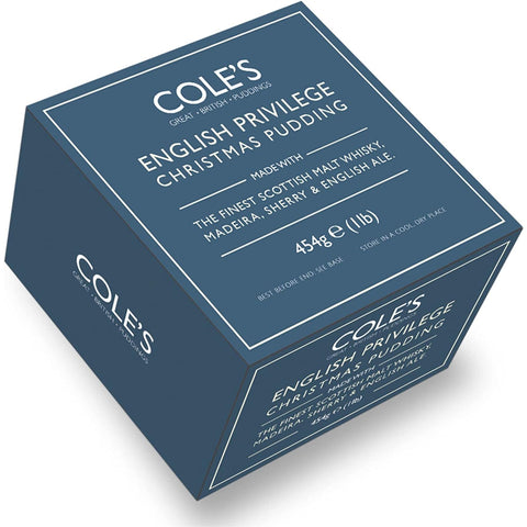 Cole'sMade to an original Cole's recipe. Made with the finest Scotch malt whisky, madeira, sherry and English ale. We use vegetable suet that contains responsibly-sourced sustainable palm oil and where possible our packaging is fully recyclable. Our puddings are free from artificial colours and flavours and are suitable for vegetarians with some recipes also suitable for vegans.