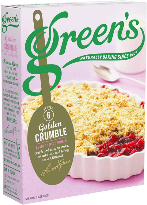 Green'sMake the perfect crumble topping with Green’s classic crumble mix. Our ready made crumble mix is quick and easy to make. It’ll taste like you’ve spent hours in the kitchen — all you have to do is add your filling of choice! This pre-made crumble topping is the ideal for anyone looking to quickly put together a sweet, delicious, crunchy, crumbly treat.