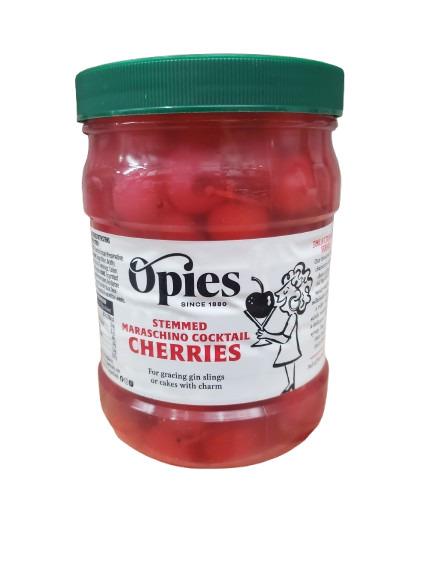 OpiesOnly the best dressed cocktails and desserts wear Opie's maraschino cherries with stems - the ideal finishing touch for any number of drinks or dishes. Opie's specially select their cherries with stems then carefully preserve them in a specially flavoured sugar syrup.