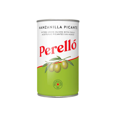 PerelloMedium sized, green, pitted Manzanilla olives have a good proportion of flesh to stone. They have a mild, gently bitter flavour which harmonises well with the spicy marinade, which gets its heat from chopped pieces of pickled guindilla chillies.