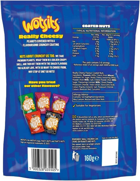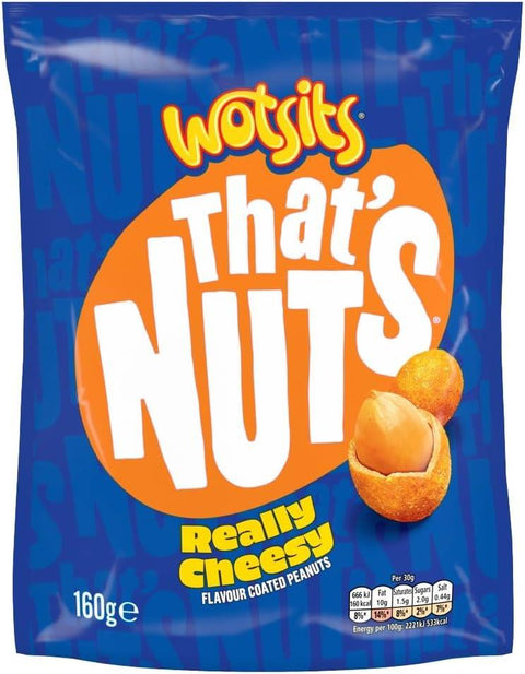That's NutsPremium coated peanuts with the unmistakable cheesy flavour of Wotsits. Crunchy, moreish, and perfect for sharing.